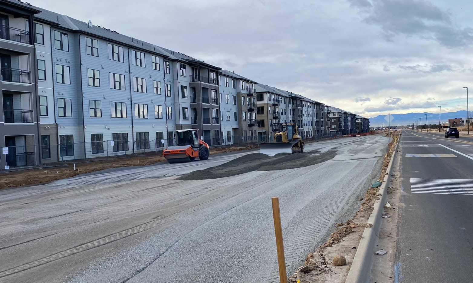 DEI was awarded the Denver Gateway Center Filing No. 7 project from Gateway North LLC. This project involves construction of 64th Ave from Tower Road to Dunkirk Street and construction on Argonne St. and Ceylon St. including earthwork, erosion control, storm sewer improvements, concrete and asphalt, signage, striping and traffic signals. Utility improvements includes 1,044 l.f. of 15”-36” RCP storm sewer, 46 l.f. of HERCP and inlets and 2,584 l.f. of waterline. Earthwork & road construction includes 15,755 c.y. of site cut and fill, 20,968 c.y. of cement and moisture treated subgrade, aggregate base course installation, 19,439 s.y. of asphalt paving, 5,641 l.f. of curb & gutter and 4,756 l.f. of sidewalk. Work also includes roadway signage and striping, erosion control.