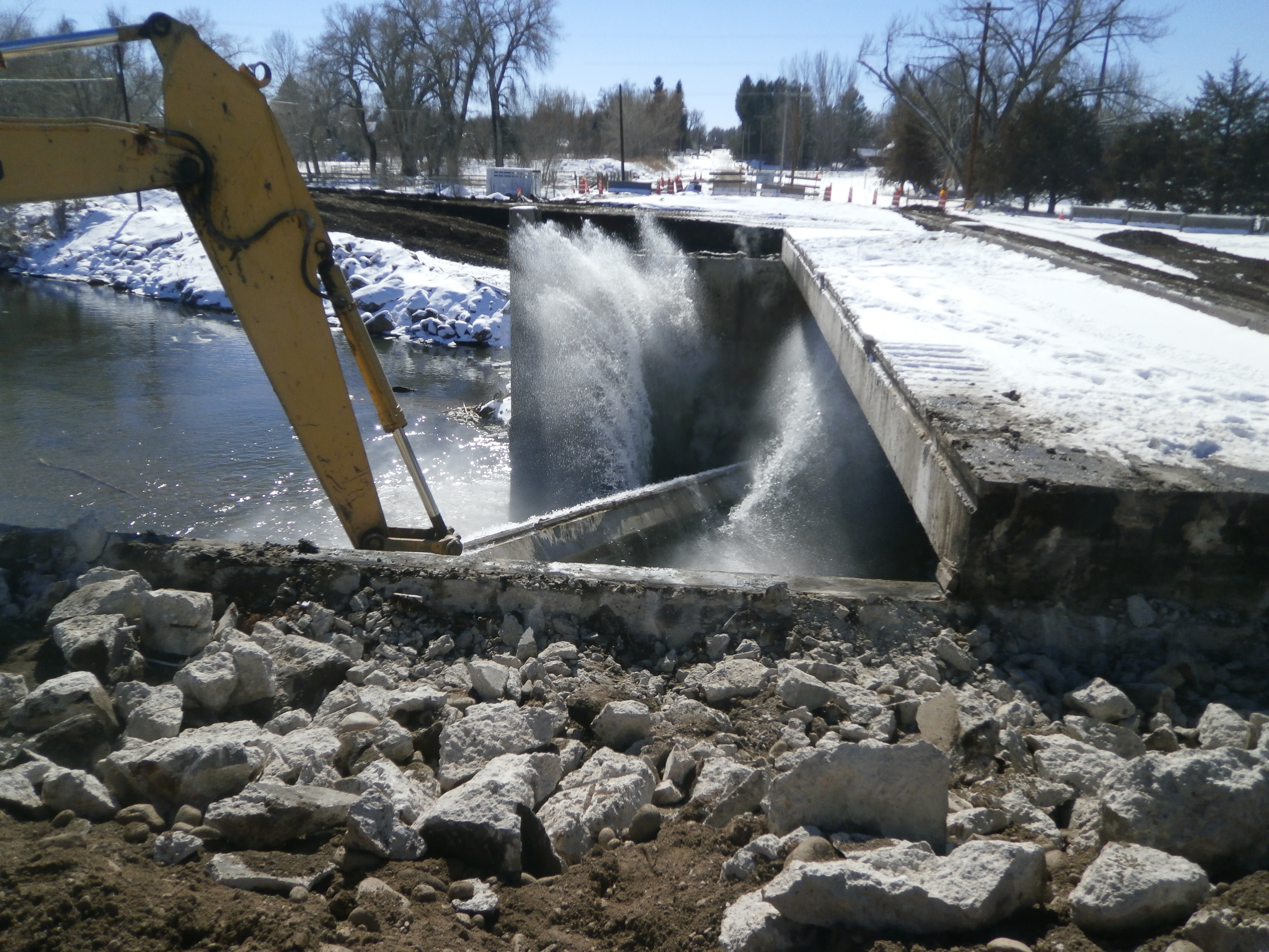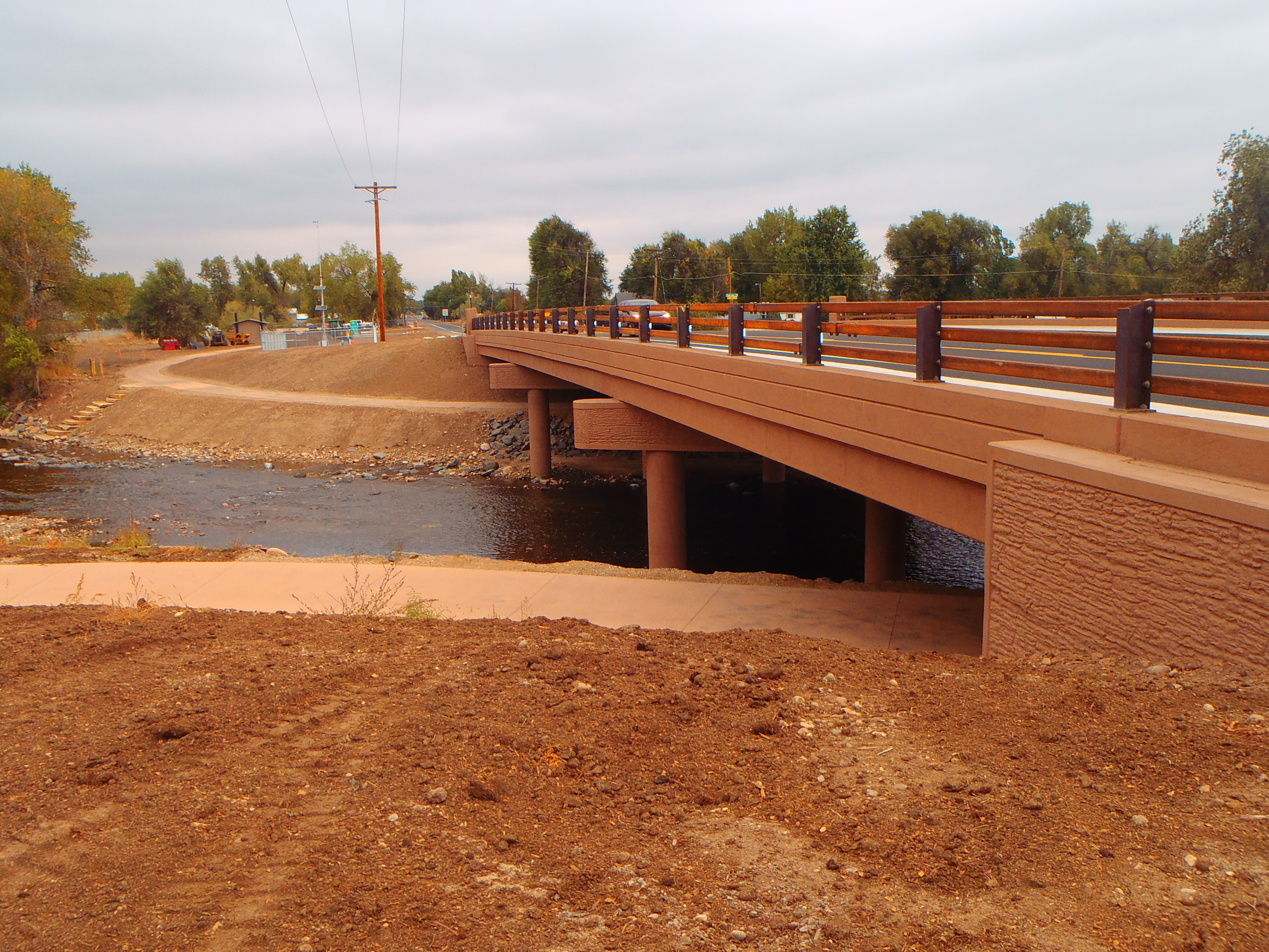 DEI was awarded the North Shield Street Road and Bridge Improvements from Larimer County. This project was for Demolition and Construction of one of the longest and widest bridges in Larimer County over the Poudre River. This was also the 1st Bridge Replacement starting a series of Bridge Replacement projects for Larimer County. This consisted of 1 mile of roadway reconstruction including clearing and grubbing, milling of asphalt, roadway cut & fill, 15,000 cy earthwork excavation, installation of 1,131 lf of 18”- 42” RCP storm sewer, manholes, inlets and a 12X4 concrete box culvert, demolition of existing bridge over the Poudre River, replacing the bridge including drilled caissons, pre-stressed concrete box, girders, railing, re-channel Cache la Poudre river to complete construction, revert river to original channel and install 3,942 cy of rip rap. Install 1,804 sy concrete sidewalk, 3,488 lf of curb & gutter, 2,275 sy concrete bikeway and traffic control, 9,154 tons of aggregate base course, 7,728 tons of asphalt paving. Completion of bridge and work in Poudre River had to be completed on tight scheduling prior to spring snow melt and water runoff.