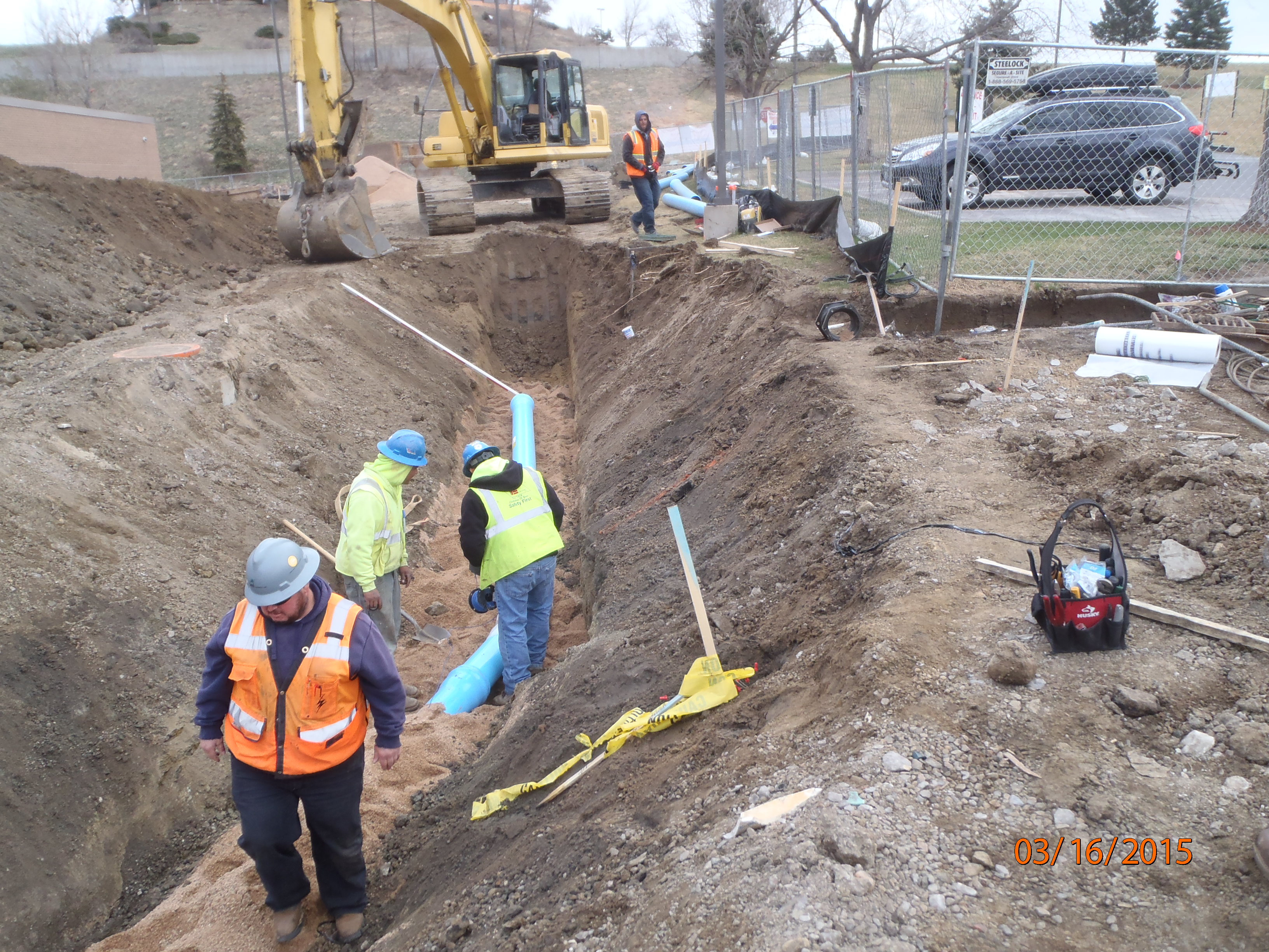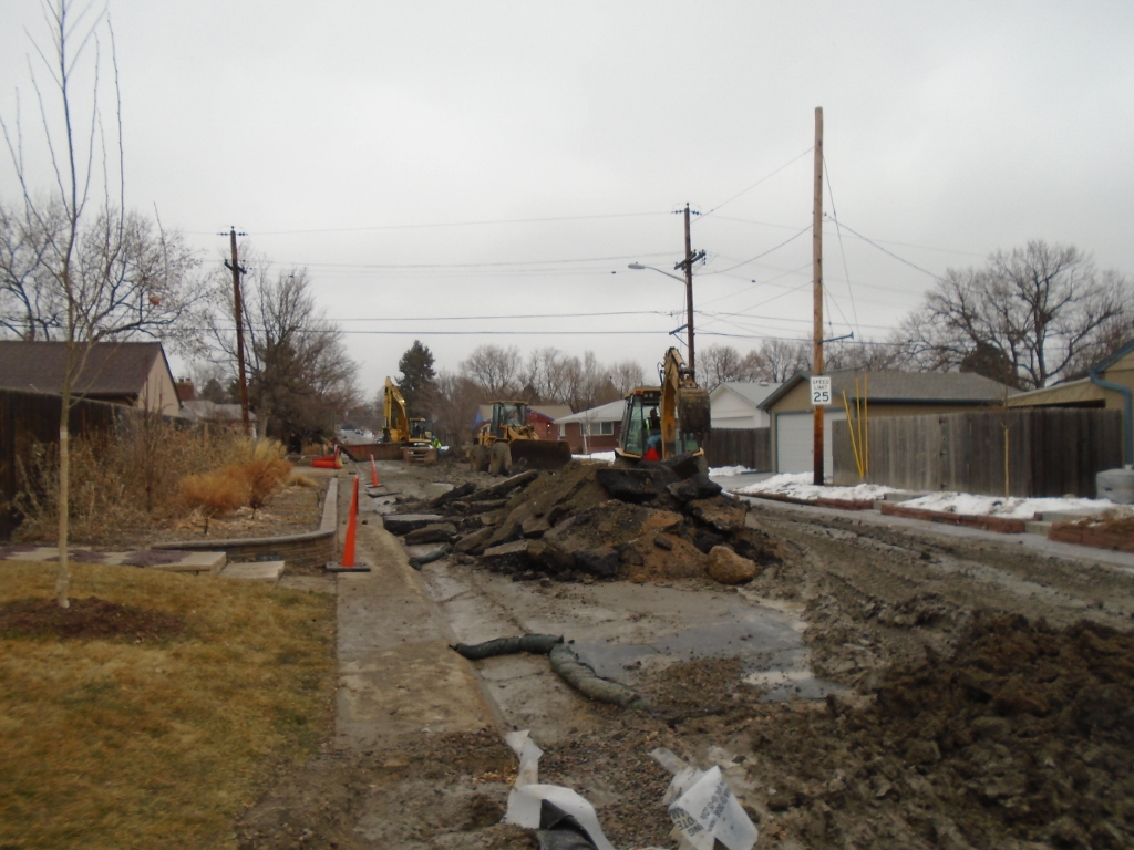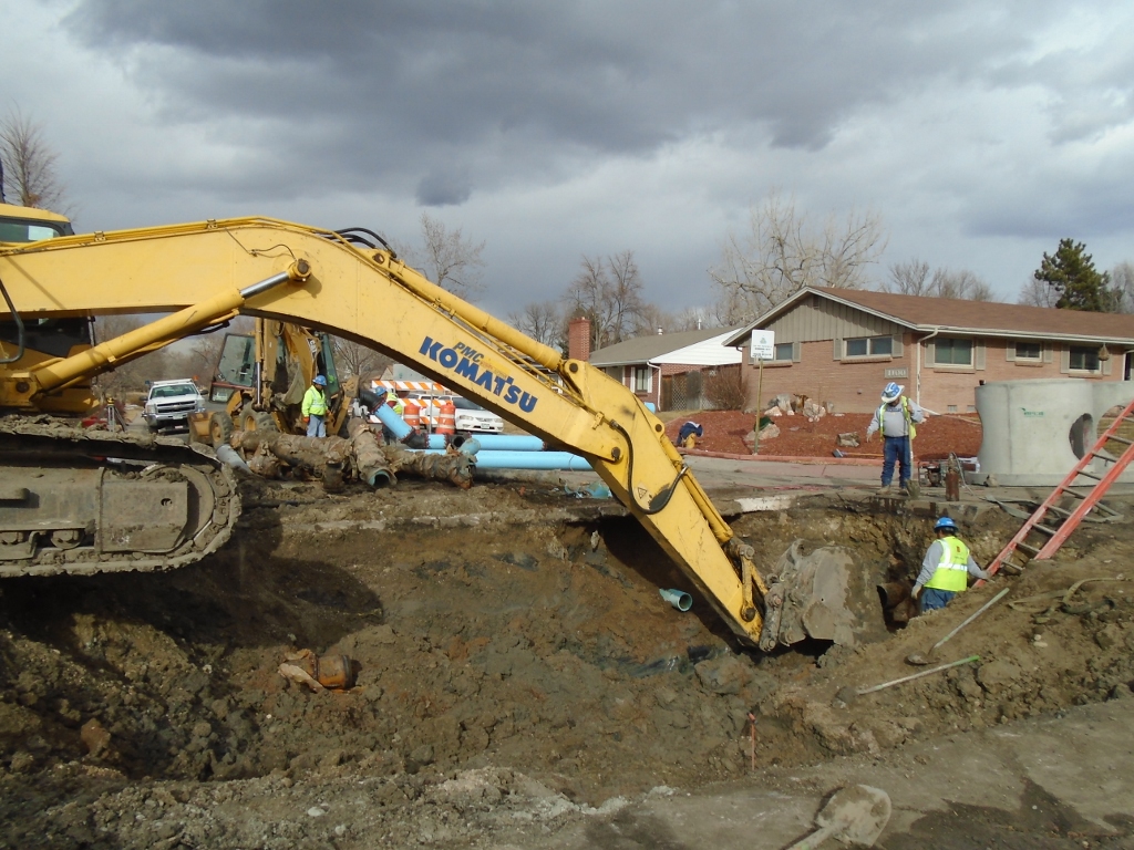 DEI was awarded the 2015 General Storm project from The City and County of Denver. This project consists of two locations, 11th Ave. and Elm Street, /S. Hudson St. and East Pacific Place. Detailed work includes installation of 135 l.f. 15” RCP, 402 l.f. of 18” RCP, 65 l.f. of 24” RCP, 195 l.f. 30” RCP, and 701’ l.f. of 36” RCP, manholes & inlets. Also included 1,165 c.y. unclassified excavation, water lowering, concrete removal and replacement, 53,000 s.y./inch asphalt replacement, 12,000 s.y./inch asphalt rotomill, 250 c.y. riprap.