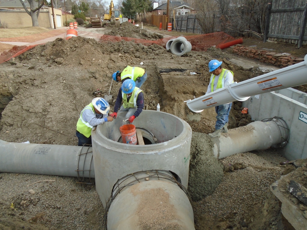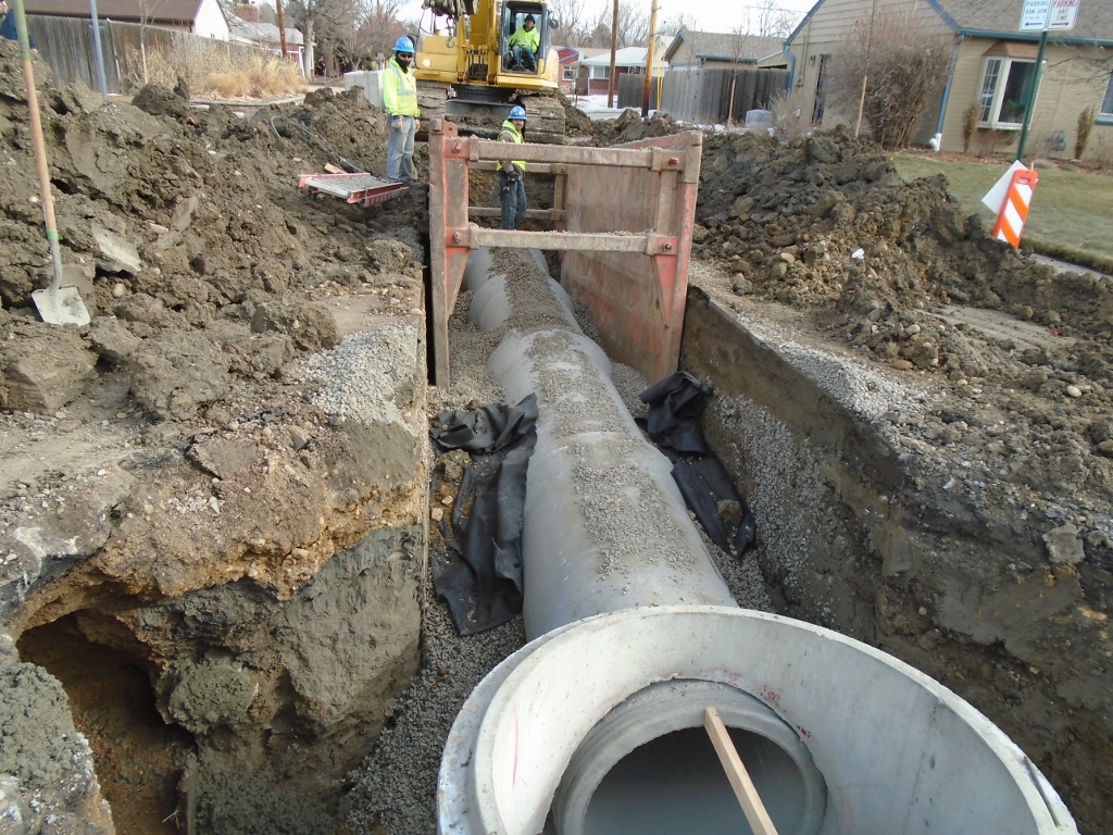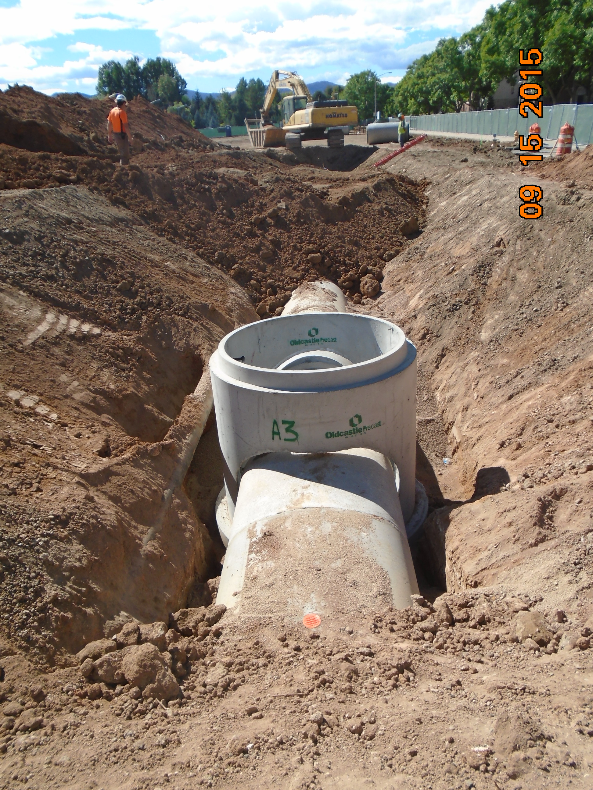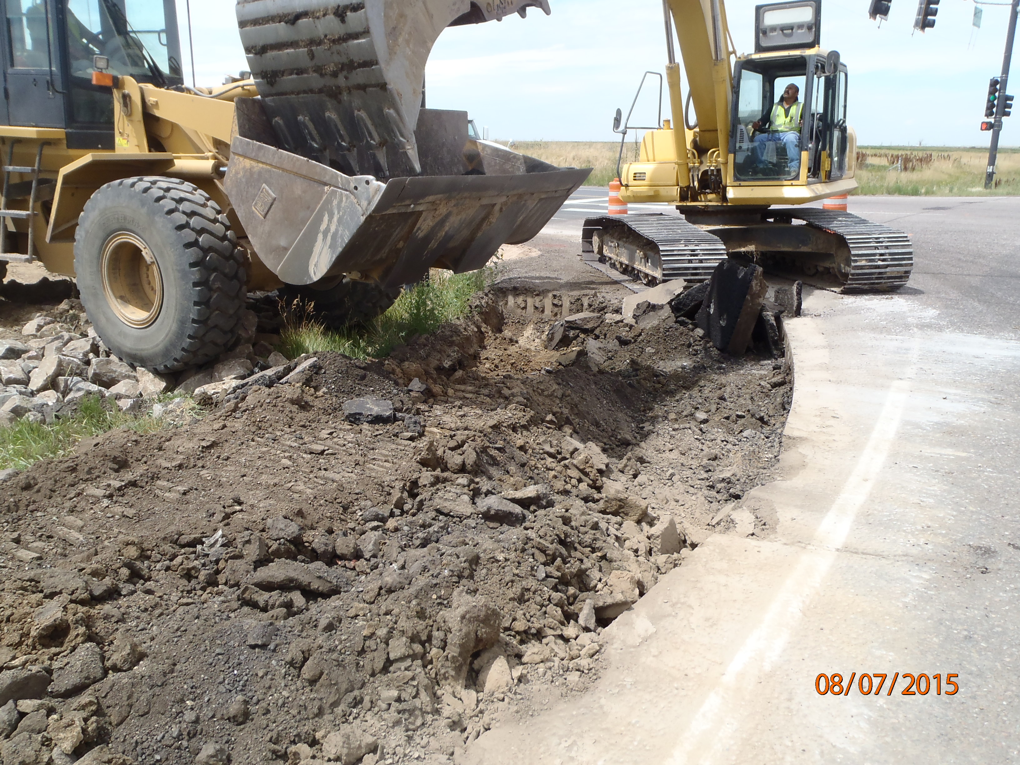 DEI was awarded the 2015 General Storm project from The City and County of Denver. This project consists of two locations, 11th Ave. and Elm Street, /S. Hudson St. and East Pacific Place. Detailed work includes installation of 135 l.f. 15” RCP, 402 l.f. of 18” RCP, 65 l.f. of 24” RCP, 195 l.f. 30” RCP, and 701’ l.f. of 36” RCP, manholes & inlets. Also included 1,165 c.y. unclassified excavation, water lowering, concrete removal and replacement, 53,000 s.y./inch asphalt replacement, 12,000 s.y./inch asphalt rotomill, 250 c.y. riprap.