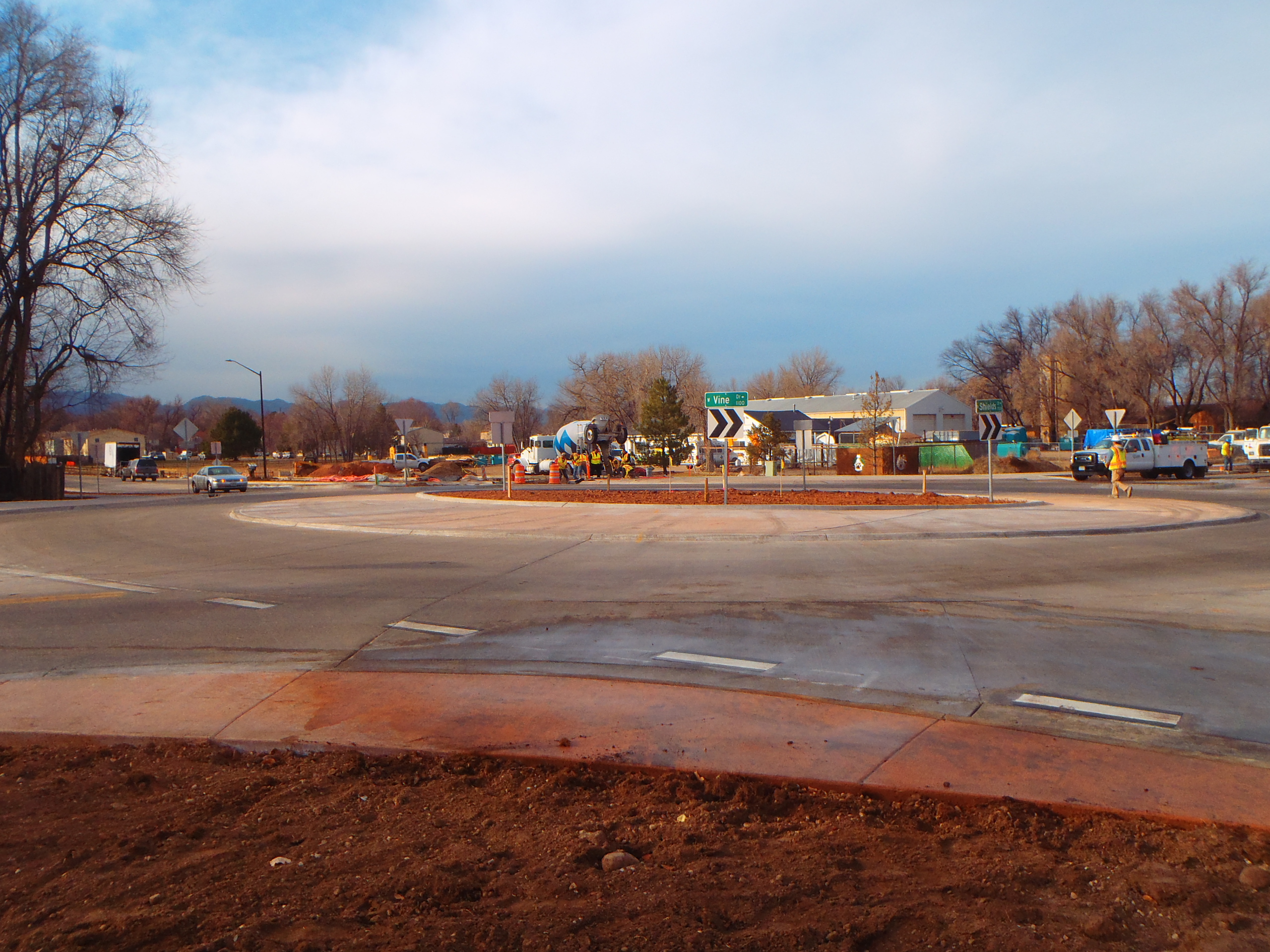 DEI was awarded the Intersection Improvements at Vine & Shields project from the City of Fort Collins. This project consists of the reconstruction of the intersection of Shields Street and Vine Drive. The intersection will be changed from a signalized intersection to a single lane roundabout. The project includes removals, erosion control, utility relocation and undergrounding, concrete construction (decorative and structural), concrete curb and gutter, asphalt paving, sidewalks, parkway construction, landscaped center island for roundabout with art piece, landscaped and raised medians with plantings, decorative railings with urban design, Low-Impact-Development areas for storm water runoff, drainage systems, irrigation system and tap, temporary traffic signals, and construction zone traffic control.