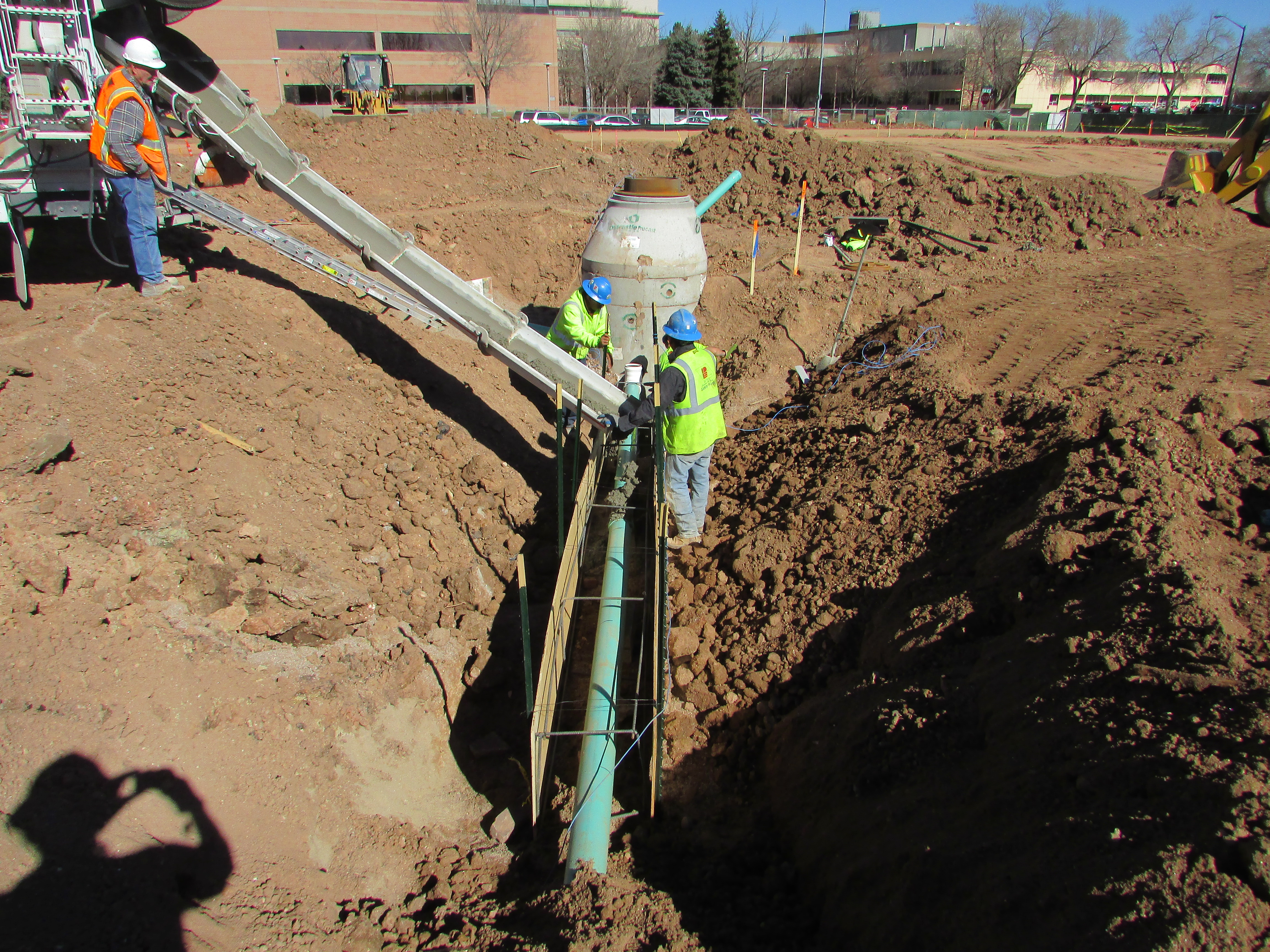 DEI was awarded the CSU Aggie Village project from PCL Construction Services Inc. The work consists of removal of the existing utilities, installation of 1,000 l.f. of 8” waterline and 6 fire services & 6 domestic services, 700 l.f. of 6” sanitary sewer with 6 storm sewer services with 4,000 l.f. of 6” & 8” roof drain.