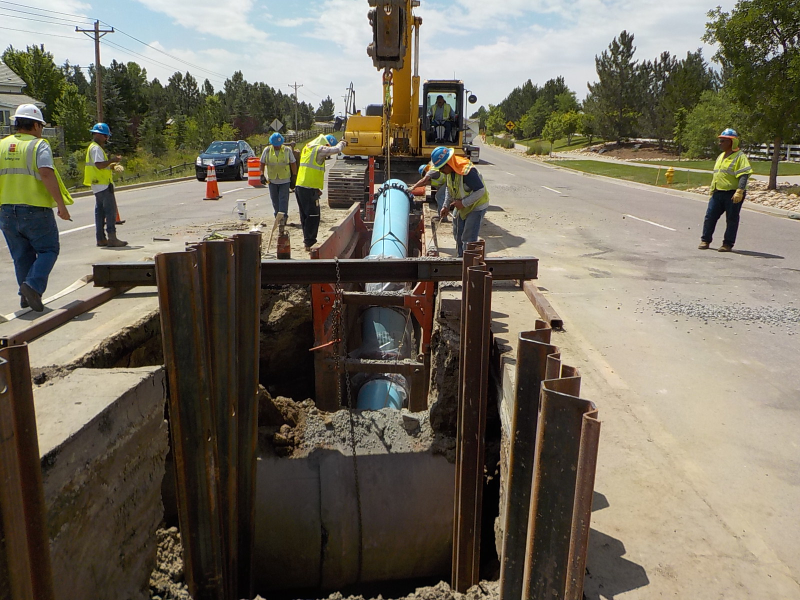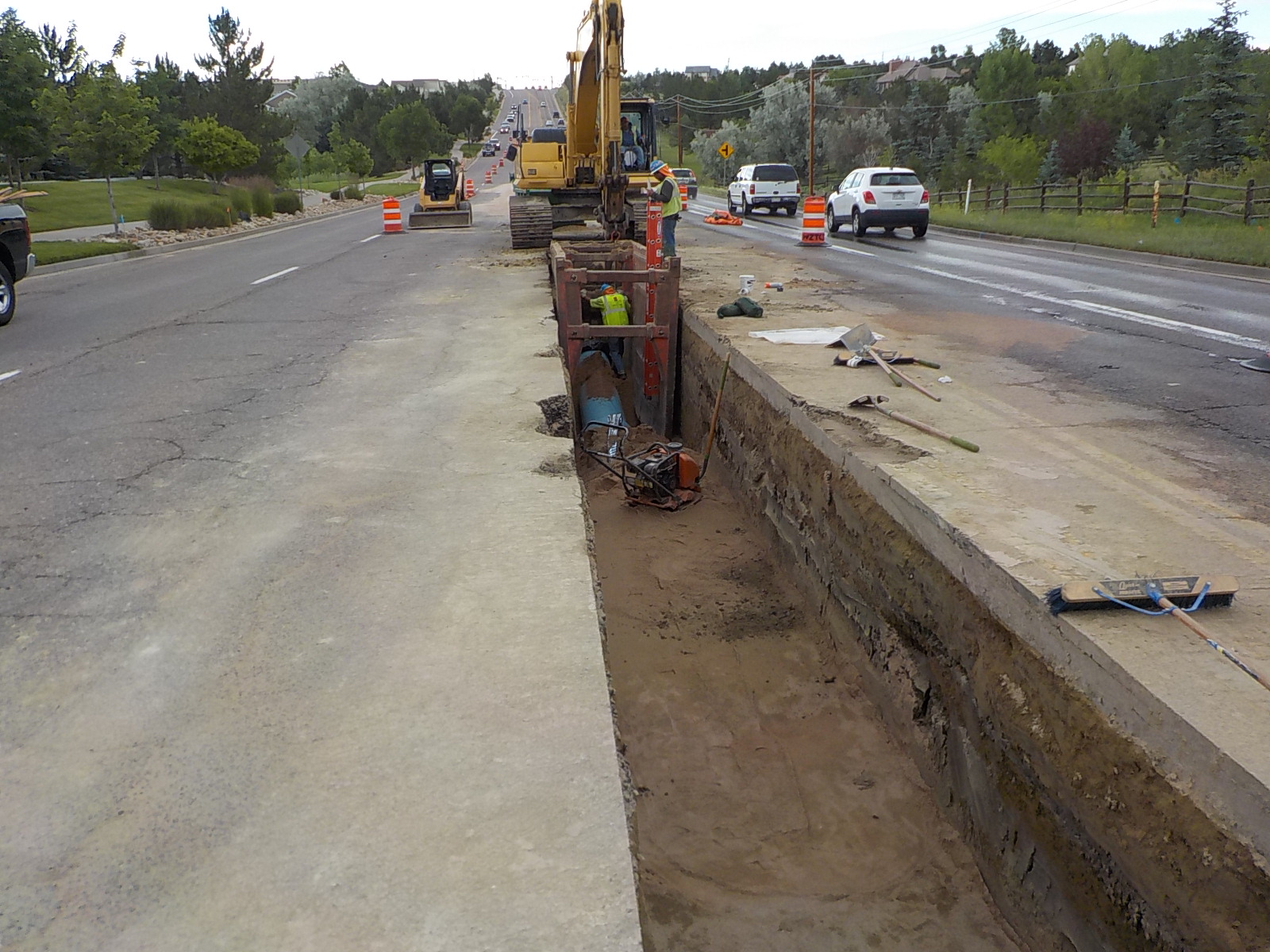 DEI was awarded the Liverpool St. 24” Waterline project from the East Cherry Creek Valley Water & Sanitation District. This project consists of Installation of 3,870 l.f. of 24”, 269 l.f. of 12” and 20 l.f. of 6” PVC waterline, four 24” and one 16” butterfly valves with vaults, 5 gate valves, wet taps, hydrants, tie into existing waterline, mill and replace asphalt, and traffic control.