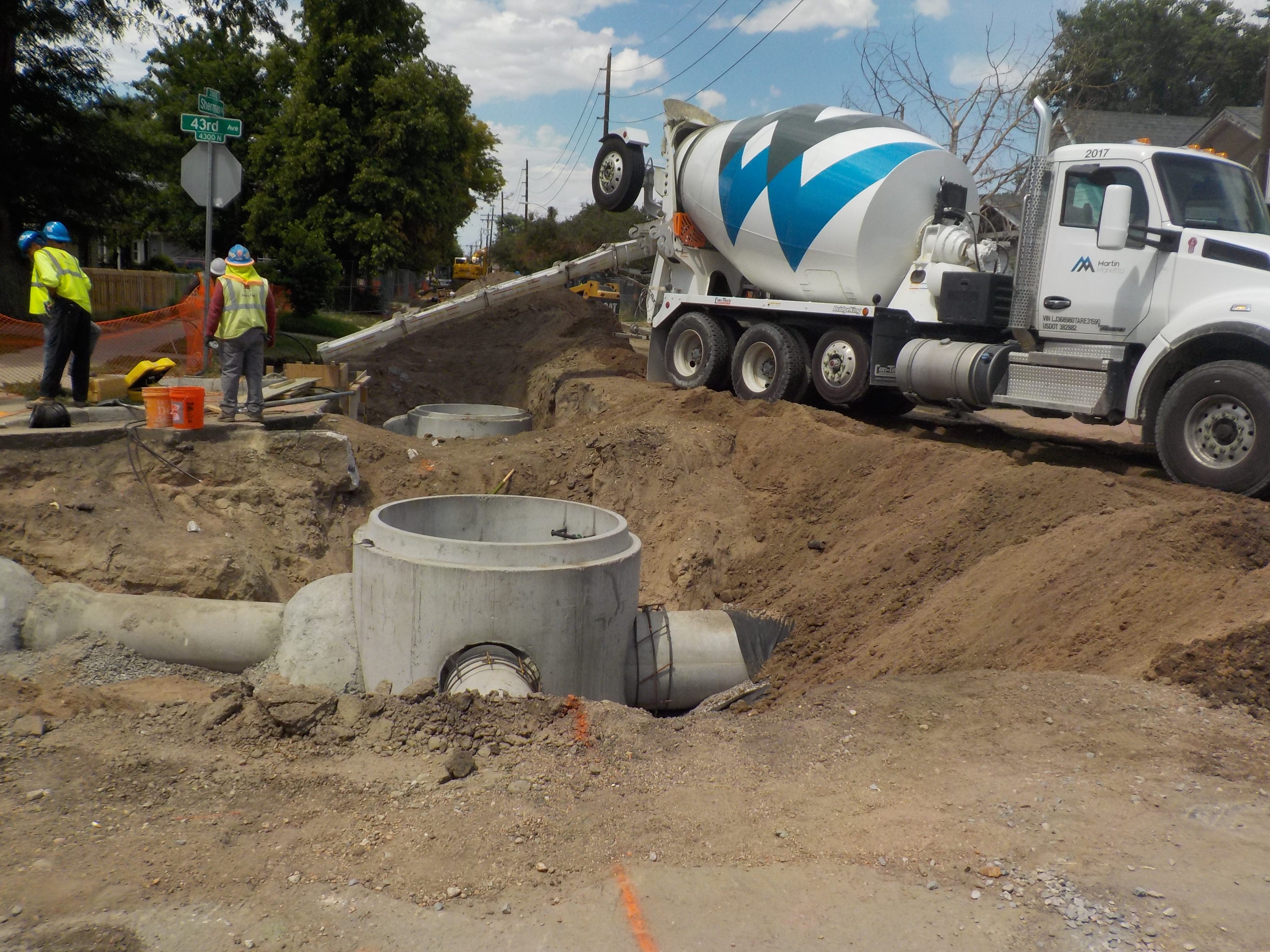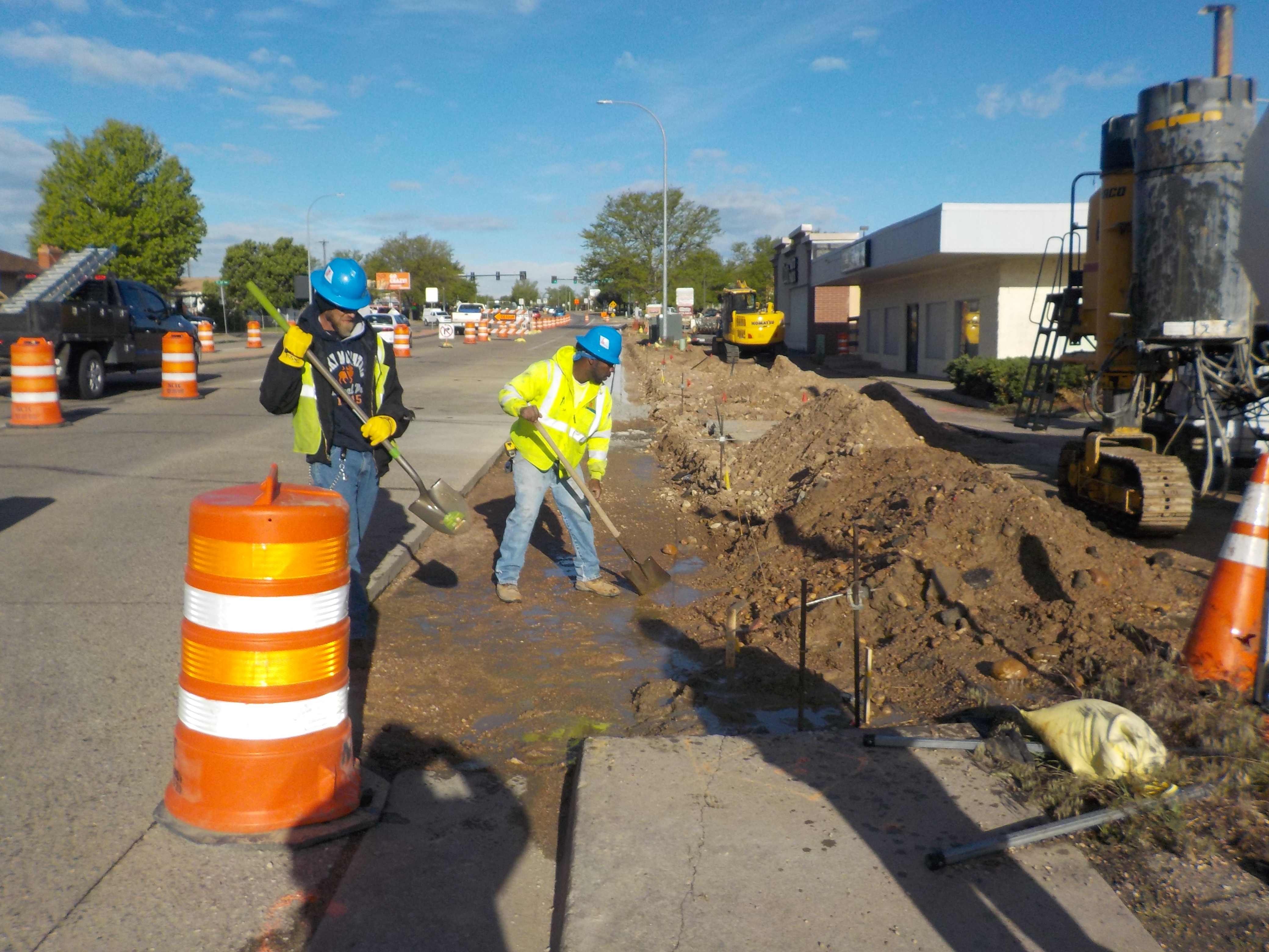 DEI was awarded the La Plata Peak General Storm project from the City and County of Denver. The La Plata Peak General Storm contract has two separate project locations, one at 43rd Ave & Sherman St and the other at Exposition Ave & S Fillmore St. Each location will address localized flooding problems by constructing a new storm drain system that ties into existing storm drain infrastructure. Concrete flatwork such as curb, gutter, sidewalk and concrete crosspans and asphalt paving will also be part of the scope of work. Detailed work includes installation of 60 lf of 15”, 155 lf of 18”, 190 lf of 24”, and 470 lf of 30” RCP storm sewer, 6 inlets and 10,000 sy of asphalt replacement, 850 lf of curb & gutter on 43rd Ave. Installation of 430 lf of 18”, 850 lf of 24”, 3,456 lf of 30” and 1,150 lf of 56” RCP storm sewer, 26 manholes, 24 inlets, 45,000 sy of asphalt replacement, 1,375 sf of concrete sidewalk and 2,150 ft of concrete crosspan on Exposition Ave.