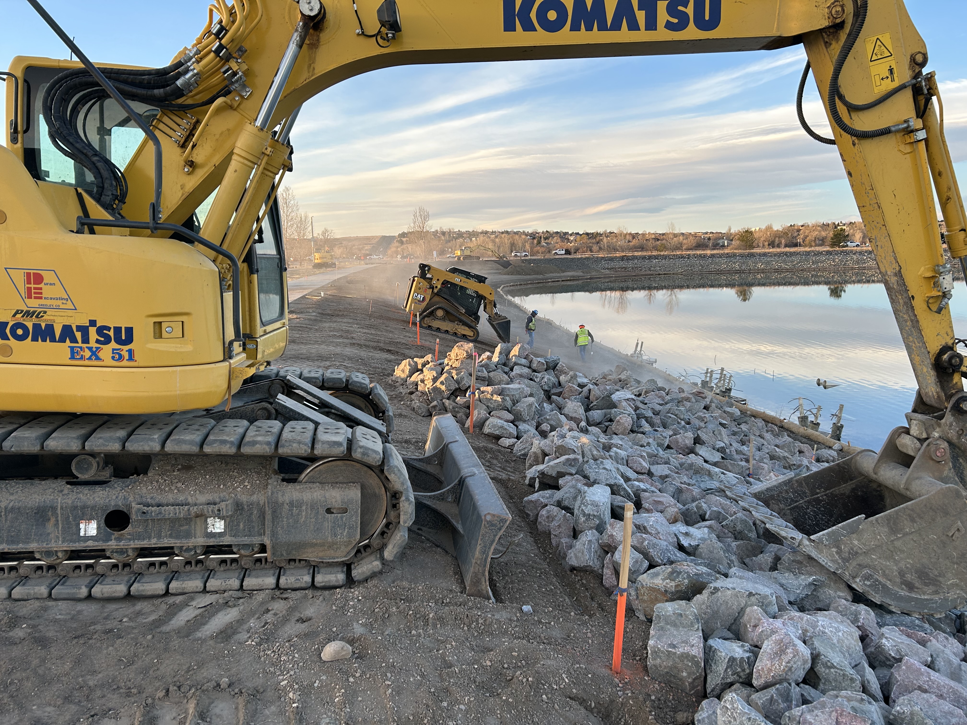 DEI was awarded the Kyger Reservoir Fishing Improvements Phase 2 project from the Town of Windsor. This project includes grading, excavation, placement of concrete, steel fishing pier, hand launch ramp, parking improvements and landscape. Detailed work includes site demolition, 1300 CY of excavation, parking lot improvements including aggregate base course, concrete paving and concrete sidewalk, construction of a movable floating pier and permanent stationary fishing pier and boat slide. Landscape & site improvements including seeding, planting of trees and shrubs, boulders and rip rap, trash receptacles and irrigation.