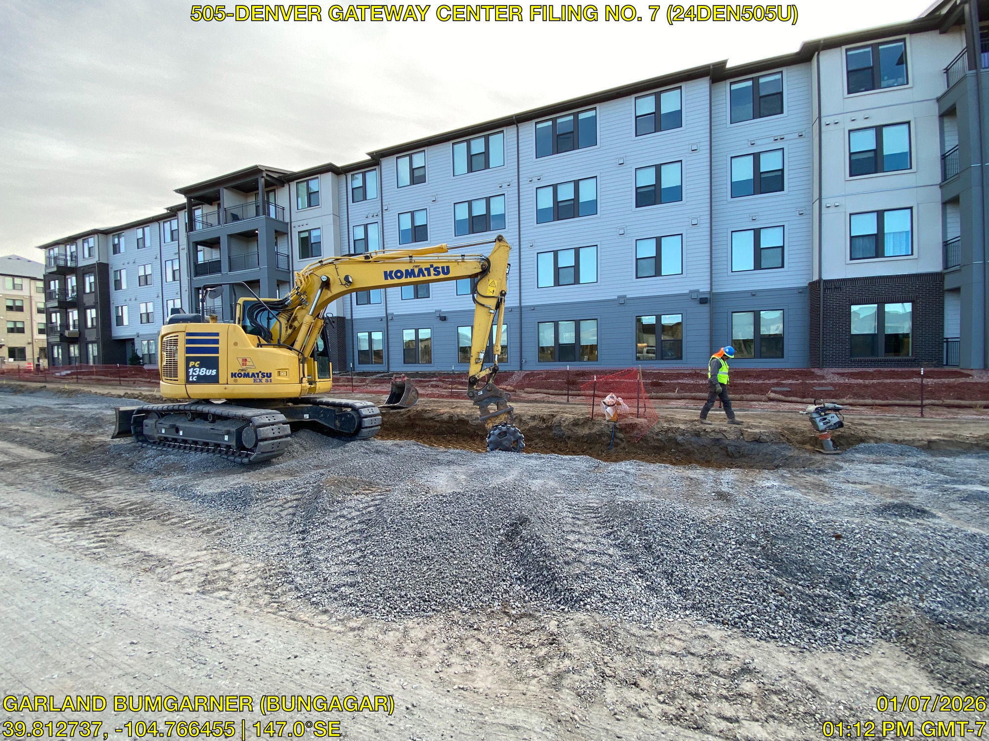 DEI was awarded the Denver Gateway Center Filing No. 7 project from Gateway North LLC. This project involves construction of 64th Ave from Tower Road to Dunkirk Street and construction on Argonne St. and Ceylon St. including earthwork, erosion control, storm sewer improvements, concrete and asphalt, signage, striping and traffic signals. Utility improvements includes 1,044 l.f. of 15”-36” RCP storm sewer, 46 l.f. of HERCP and inlets and 2,584 l.f. of waterline. Earthwork & road construction includes 15,755 c.y. of site cut and fill, 20,968 c.y. of cement and moisture treated subgrade, aggregate base course installation, 19,439 s.y. of asphalt paving, 5,641 l.f. of curb & gutter and 4,756 l.f. of sidewalk. Work also includes roadway signage and striping, erosion control.