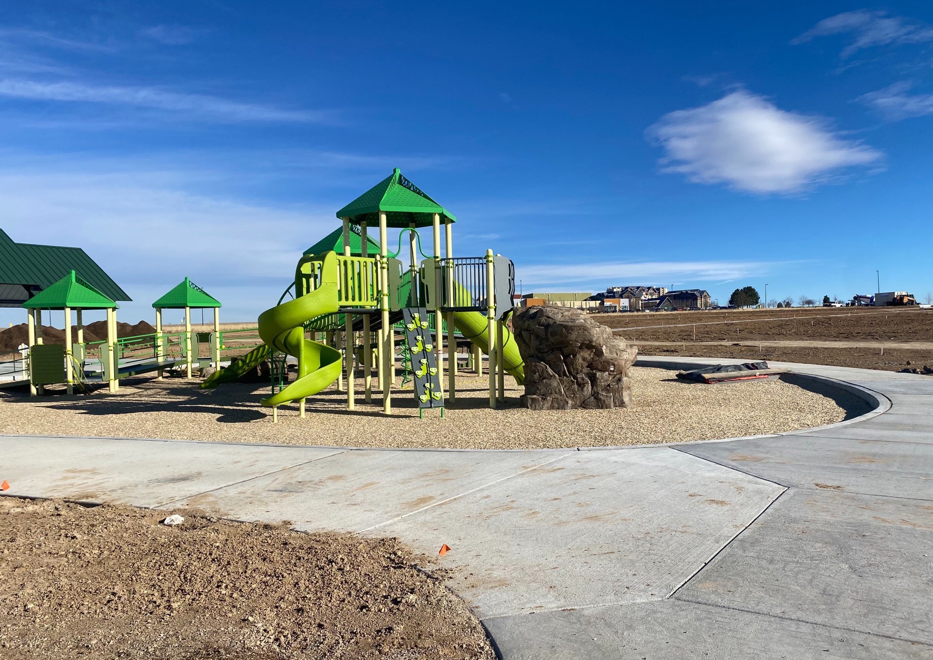DEI was awarded the High Point Park and West Fork Regional Trail project from the Denver High Point Metropolitan District. This project includes trail installation, park construction, earthwork and utility installation. Trail construction includes installation of approx. 4,000 s.y. concrete trail and 2,000 crusher fines trail. Utility installation includes two waterline lowerings, approx. 900 l.f. of 24”-36” RCP, 328 l.f. of 12”PVC, manholes and headwall outfall and approx. 850 l.f. of 8” sanitary sewer and manholes. Earthwork includes approx. 27,191 c.y. of unclassified excavation and 14,500 c.y. of over excavation, installation of parking lot including subgrade prep and grading and installation of asphalt paving, curb & gutter and aggregate base course. Park construction includes the installation of pickleball courts, a shade structure, benches, picnic tables, bike racks, trash and pet receptacles and seeding.